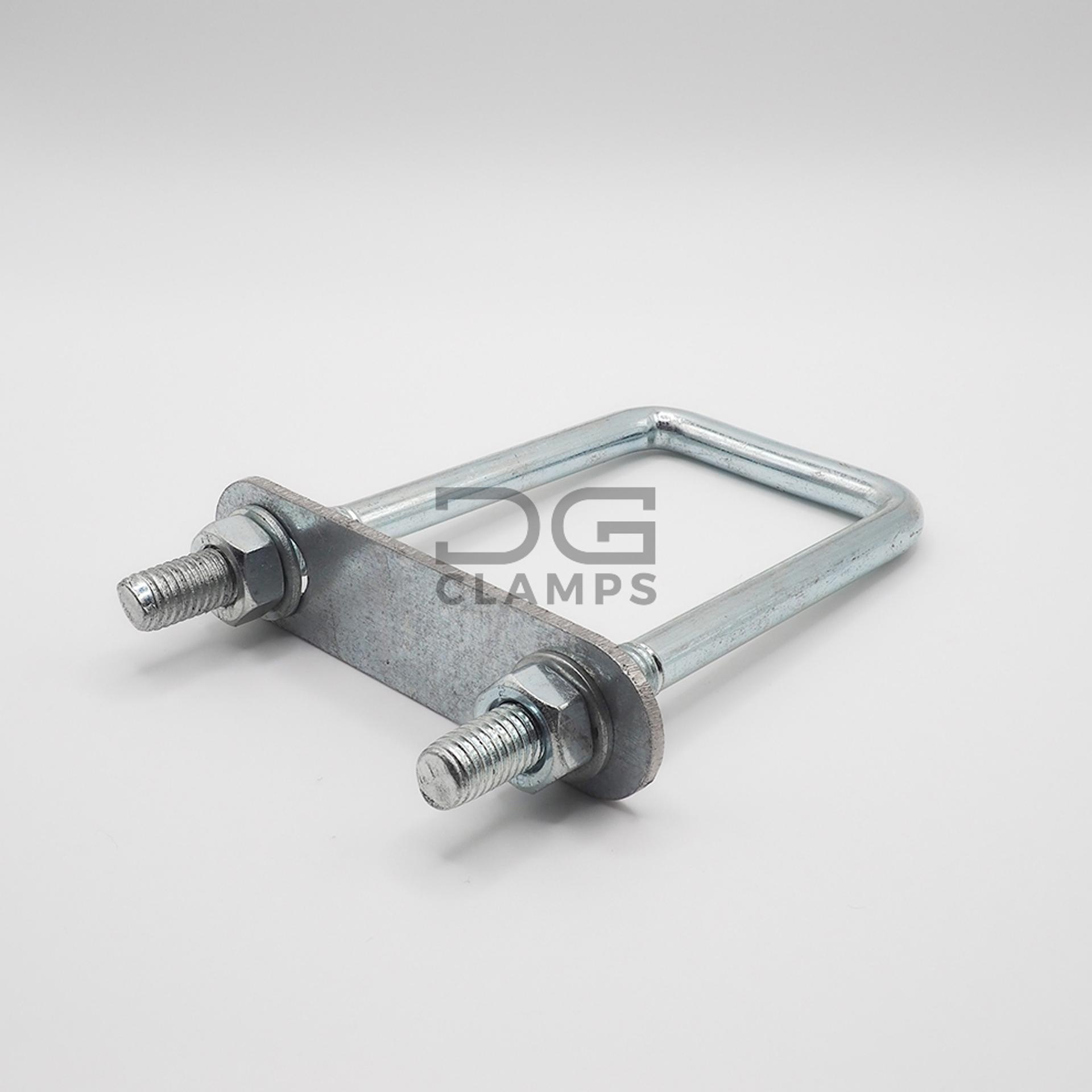 Wersja kwadratowa przeznaczona jest do mocowania profili kwadratowych lub prostokątnych. Obejma mocowana jest za pomocą dwóch nakrętek oraz stalowego płaskownika o grubości 2 mm, co zapewnia trwałe i sztywne połączenie.