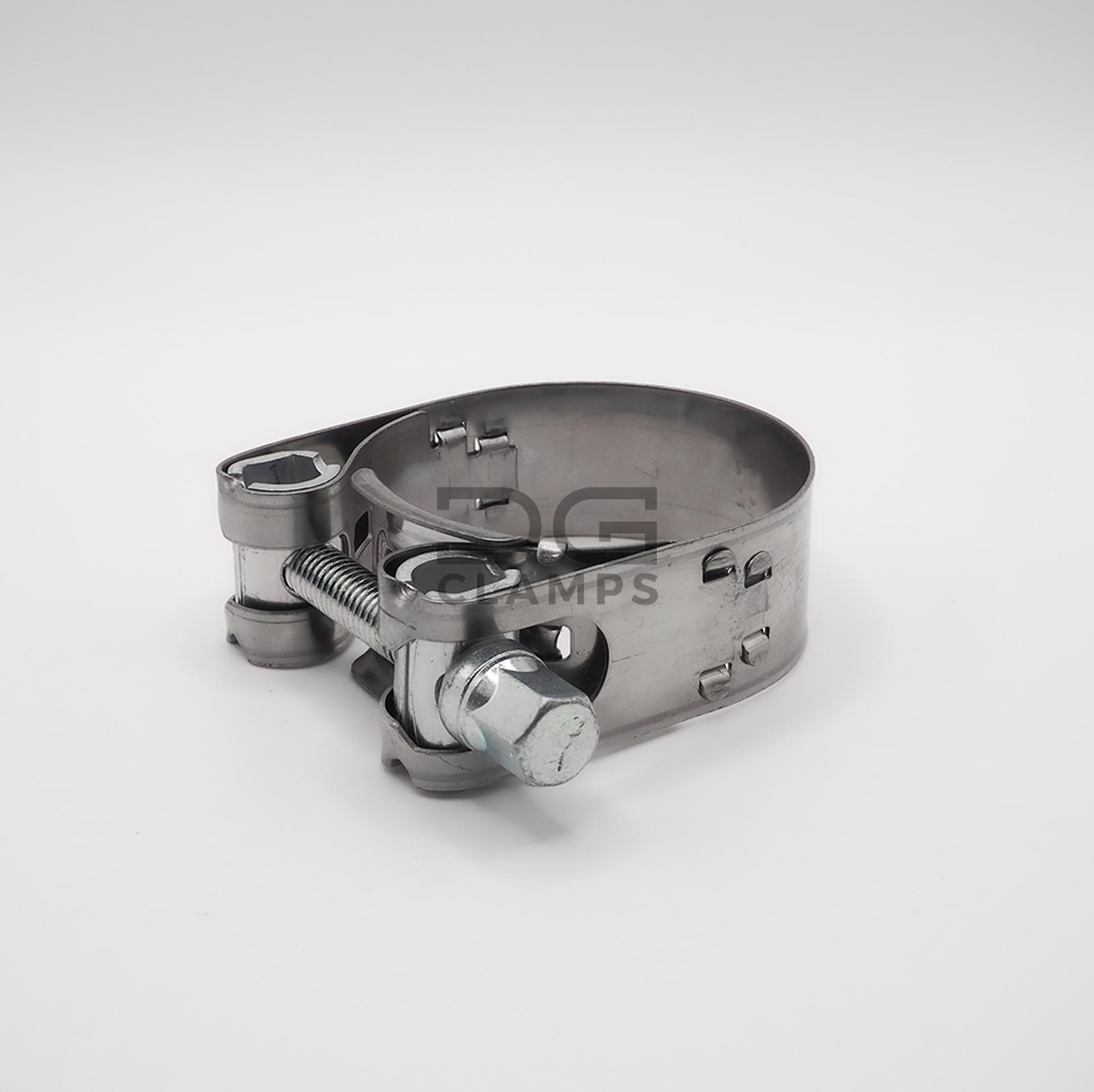 Obejmy zaciskowe z zamknięciem przegubowym GBS wykonane są z taśmy stalowej o szerokościach 18, 20, 25mm jako jedno lub wieloczęściowe. Taśma obejm posiada odgięte ku górze brzegi, co zapobiega uszkodzeniu powierzchni mocowanego przewodu przy napinaniu i pracy obejmy. W obejmach tych zastosowano rozwiązania techniczne polegające na połączeniu kształtowym taśmy (rozwiązania tradycyjne to zgrzewanie). Łączenie taśmy następuje poprzez specjalne wąsy wsuwane w otwory i zaciskane mechanicznie. Zastosowanie takiego połączenia pozwoliło wyeliminować powstawanie naprężeń ścinających na styku łączonych powierzchni. Dodatkowa różnica polega na sposobie wywinięcia luźnych końców taśmy. W obejmach GBS luźne końce taśmy są wywinięte do środka co wzmacnia siłę zacisku. Obejmy są zamykane śrubami z przedłużonym łbem, który zastępuje tuleję dystansową. Elementami składowym obejmy są również sworznie zwijane z taśmy stalowej, z których jeden pełni rolę nakrętki, a drugi bolca.